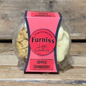 Fabulously crunchy oat cookie full of lusciously chewy cranberry pieces, coated in a pure velvety white chocolate.